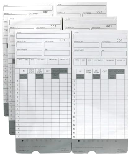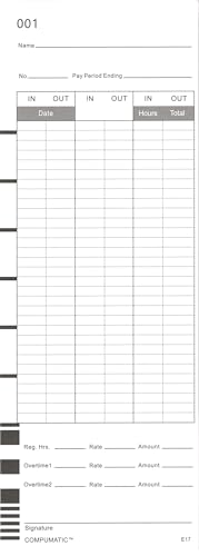 50 Time Cards for uPunch HN2000, HN2500, HN4000, HN4500 AutoAlign Calculating Time Clock and More HNTC2 UPTC2000 COMPUMATIC Compatible