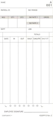 (50) Allied AT-4500 Time Cards Also Fits Acroprint ATR480 ATR481, 1-Packs of 50ea, Compatible by COMPUMATIC
