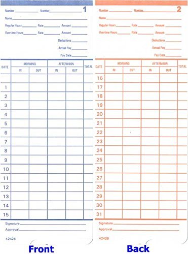 100 Time Cards for uPunch HN1000 / HN3000, fits All HN1000 / HN3000 / HN3500 / HN5000 Clocks/Bundles (fits Original and Green Series) Replaces uPunch HNTC1050 / HNTCG1050 / HNTC1100 / HNTCG1100