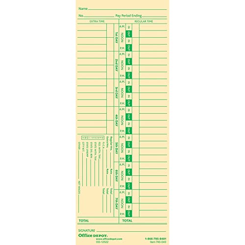 Office Depot Time Cards with Deductions, Weekly, Monday-Sunday Format, 2-Sided, 3 3/8in x 8 7/8in, Manila, pk of 100, GB-735104