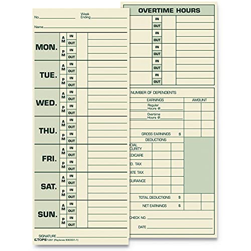 Tops Time Cards , Weekly, 1-Sided, Numbered Days, 3-1/2" x 9", Manila, Green Print, 500-Count (1252)