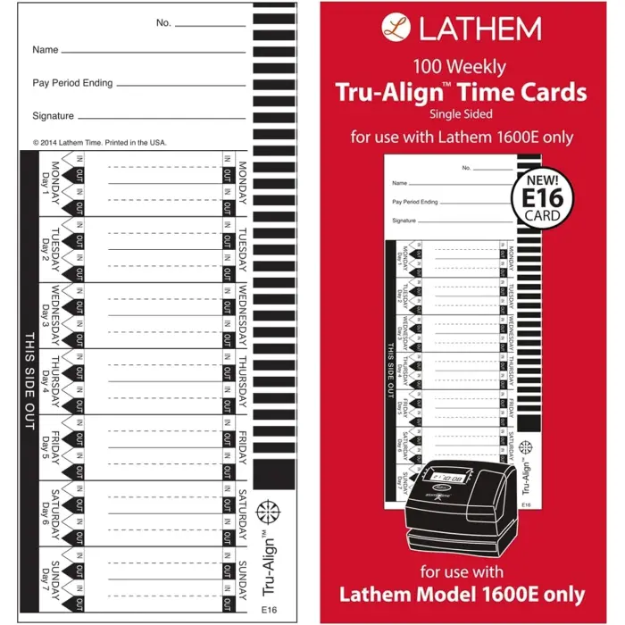 Lathem TruAlign Time Cards for 1600E 100-Pack