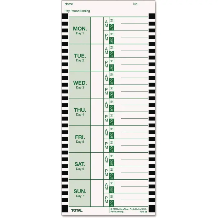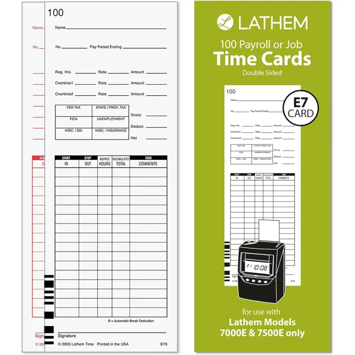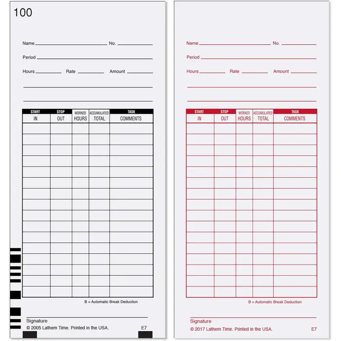 Lathem Time Cards for 7000E, 7500E 100-Pack, 7 inch