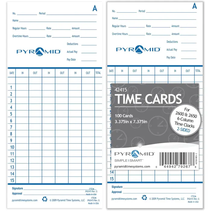 Pyramid Time Cards for 4000, 5000 Series 100-Pack